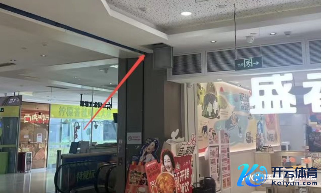 涉事门店门口处天花板存在孔洞。盛香亭方供图
