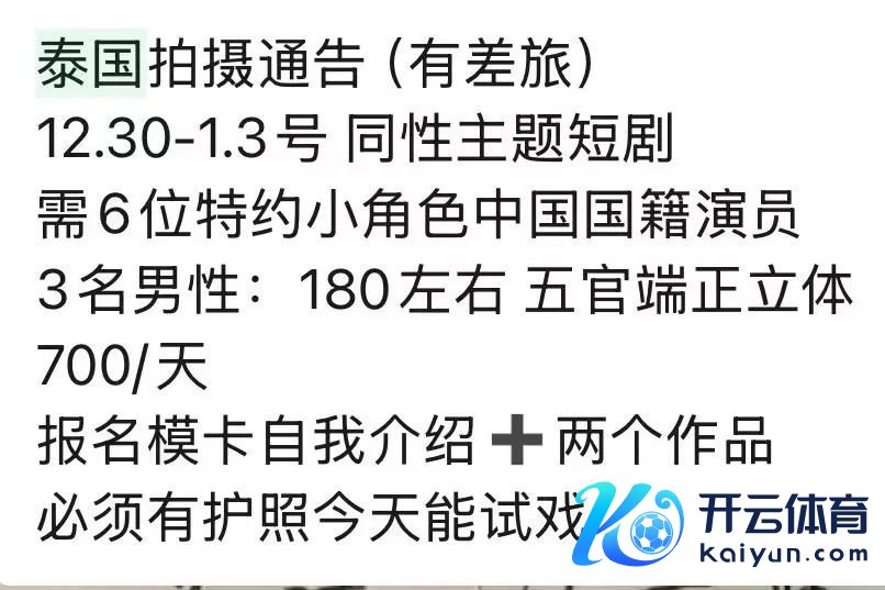 别称不肯具名的演员告诉新京报记者,他曾在演员晓示群中看到过自称泰国剧组的晓示,这些招募信息中,演员的薪资较高、条目却低,有的晓示以致载明仅招募女性。这让一些演员皆以为其中有蹊跷。