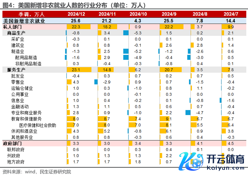 本期非农服务,不仅总量强、结构也可以。12月新增非农服务25.6万东说念主,分行业看:训练医疗和政府部门是近一年非农服务的热切扶直,12月共新增11.3万东说念主弘扬清楚;值得看重的是,更多的服务业也呈现了强劲的服务增长,包括零卖业、恬逸旅舍业、专科和生意服务、金融和信息业。